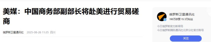 1.《商务部国际贸易谈判代表兼副部长将赴美与美国官员举行会晤?外交部回应》观察者网2025-08-26 18:48